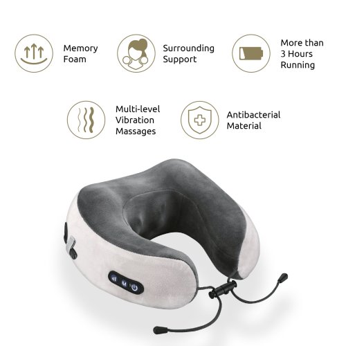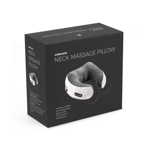Balení obsahuje: masážní polštář z anatomické pěny s potahem z mikro plyše, nabíjecí kabel microUSB, manuál, cestovní vak.