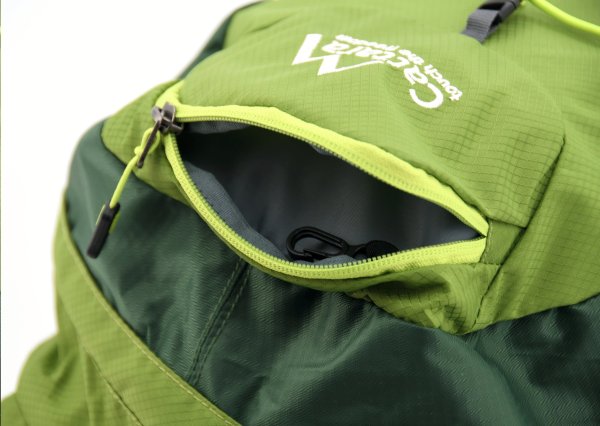 Vrchní část je opatřena pláštěnkou, která poskytuje důslednou ochranu před deštěm. Spodní část je opatřena opaskem se zapínacími kapsami pro drobnosti. Objemná hlavní kapsa je opatřena i vnitřní kapsou. Čelní strana je opatřena jednou menší kapsou na vrchní části batohu a šněrovacím systémem, pro stažení batohu a zamezení pohybu materiálu uvnitř, vhodným i pro přichycení cyklistické přilby. Na bocích jsou potom dvě stahovatelné sítěné kapsy. Opasek je rovněž opatřen kapsami se zapínáním na zip.