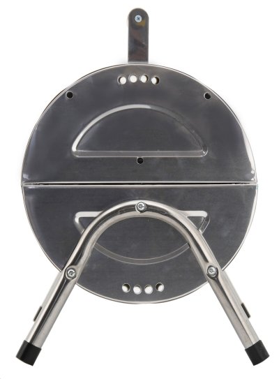 Konstrukce je vyrobena z kvalitního nerezového plechu s leštěným povrchem. Dřevěné madlo zajistí pohodlné přenášení zařízení. Stabilitu zajištují čtyři kovové nohy, přišroubované k tělu grilu.