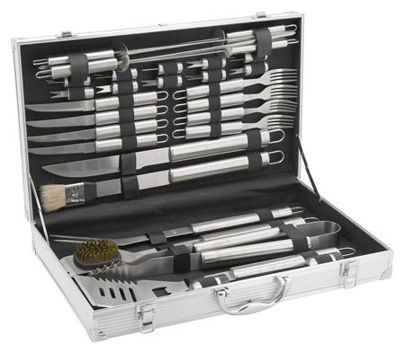 Sada obsahuje veškeré nástroje pro přípravu a konzumaci nejrůznějších pokrmů, ale i následnou údržbu grilu. Veškeré nástroje jsou navíc kvalitně zpracovány z nerezové oceli.