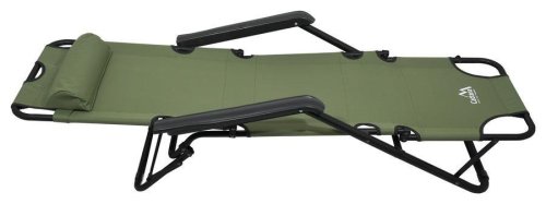 Lehátko lze používat konvenčním způsobem, nebo lze složit do podoby rybářského křesla, jež ocení kdejaký outdoor nadšenec. Lehátko je opatřené výškově nastavitelným polštářem a opěrkami rukou pro maximální pohodlí.