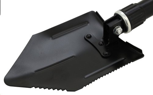 Lopatku lze používat konvenčním způsobem jako lopatu, čepel je však ještě vybavena pilkou a lze ji sestavit i jako motyku.