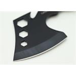 Sekera je vyrobena z odolné nerezové oceli s černěným povrchem, který nejen dodává stylový vzhled, ale také poskytuje dodatečnou ochranu proti opotřebení a korozi. Ostří o délce 9,8 cm a tloušťce materiálu 4 mm zaručuje vysokou účinnost. Celková výška sekery je 8,5 cm a délka včetně rukojeti činí 24,5 cm.