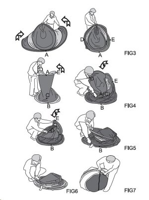 Nosné tyče jsou vyrobeny z odolných skelných vláken s výbornou ohebností a dlouhou životností. Práce se skládáním a nasouváním tyčí díky samorozkládací konstrukci odpadá. Příslušenství samozřejmě zahrnuje také kolíky pro ukotvení základny a napínacích nastavitelných provázků. Stan má ve složeném stavu kruhový tvar o rozměrech 75 x 9 cm, takže jej snadno přenesete, uložíte do kufru auta nebo uskladníte.