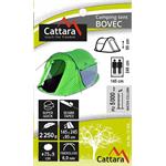 Díky šikovné samorozkládací konstrukci stan pouze vybalíte a pak už jen ukotvíte, aby vám ve větru neulétl. Pro jistotu nechybí ani napínací nastavitelná lanka. V jednoplášťovém stanu Cattara BOVEC s celkovými rozměry 245 x 145 x 95 cm se pohodlně vyspí 2 osoby. Hlavní vstup je opatřen oboustranným zipem pro snadné otevírání zvenku i zevnitř. Po otevření hlavního vstupu narazíte na síťovanou prodyšnou plentu (moskytiéru), která zamezí vstupu nezvaným hostům, jako jsou komáři, mouchy a jiný hmyz.