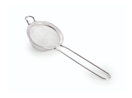 Jemný cedník s rukojetí a očkem dobře drží na hrnci či hrnečku.