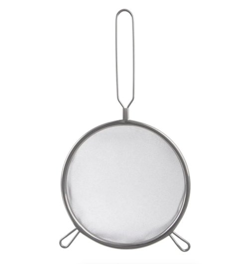 Cedník s velmi jemným sítkem (oka 0.45 x 0.45 mm), s rukojetí a očkem dobře drží na hrnečku. Průměr 20 cm, délka 34.5 cm. Nerezová ocel. Vhodné do myčky nádobí. EAN 8592381227050
