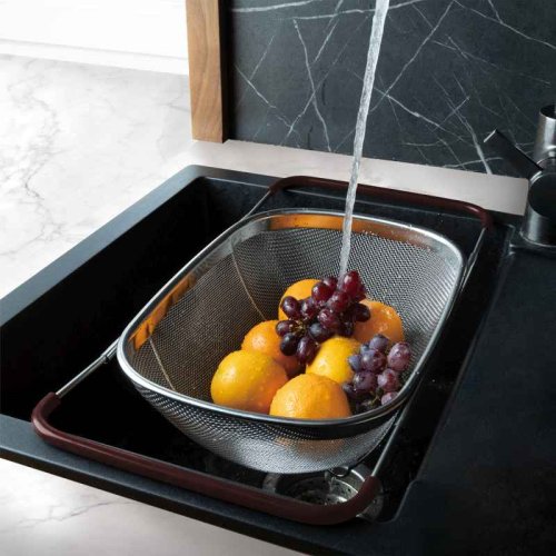 Tento flexibilní síťovaný cedník z vysoce kvalitní nerezové oceli 18/10 je ideálním pomocníkem pro každodenní práci v kuchyni. Díky nastavitelným rukojetím v matné bordó barvě jej snadno umístíte na různé typy dřezů, což zajišťuje maximální pohodlí a praktičnost při mytí ovoce, zeleniny nebo cezení těstovin.