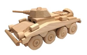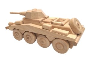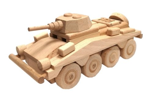 Dřevěný model transportéru je vyroben z vysoce kvalitního bukového dřeva. Jeho povrch je pouze voskován a leštěn, není nijak chemicky upravován či barven, aby byl zachován přírodní vzhled. Dřevěnému transportéru se točí kolečka a nemá žádné ostré hrany. Je vhodné i na pískoviště. Hlavní vlastnosti: Precizní zpracování bukového dřeva Zaoblené hrany Pohyblivé prvky modelu