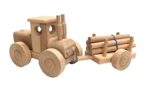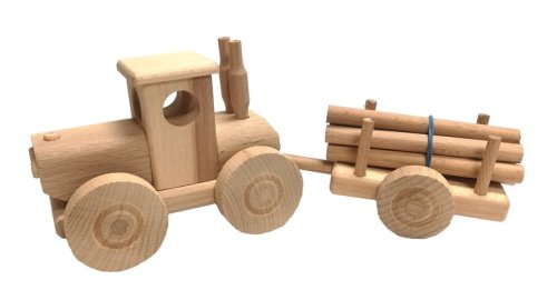 Dřevěný model traktoru je vyroben z vysoce kvalitního bukového dřeva. Jeho povrch je pouze voskován a leštěn, není nijak chemicky upravován či barven, aby byl zachován přírodní vzhled. Dřevěnému traktoru se točí kolečka a nemá žádné ostré hrany. Je vhodné i na pískoviště. Hlavní vlastnosti: Precizní zpracování bukového dřeva Zaoblené hrany Pohyblivé prvky modelu