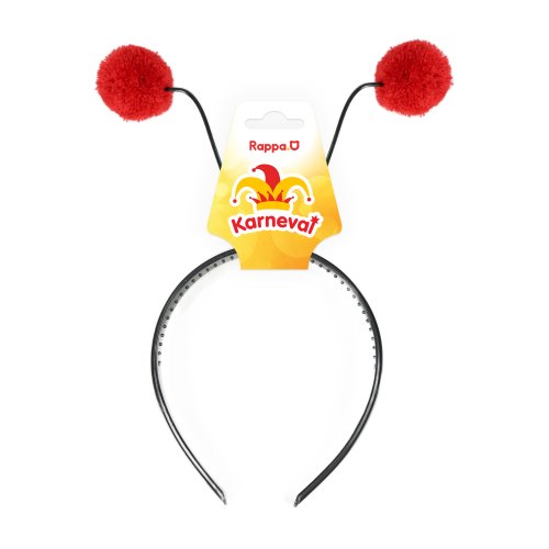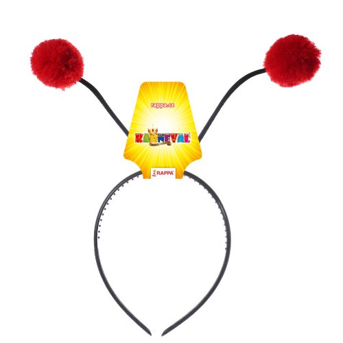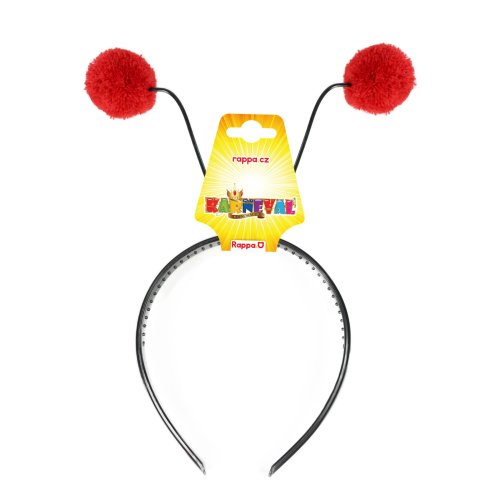 Karnevalová čelenka beruška/brouček s tykadly. Čelenka je v černo-červené barvě a je senzačním doplňkem na karneval ke tvému kostýmu!