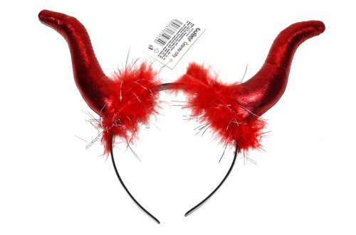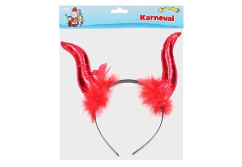 Čelenka čertovy rohy s péřovou aplikací.