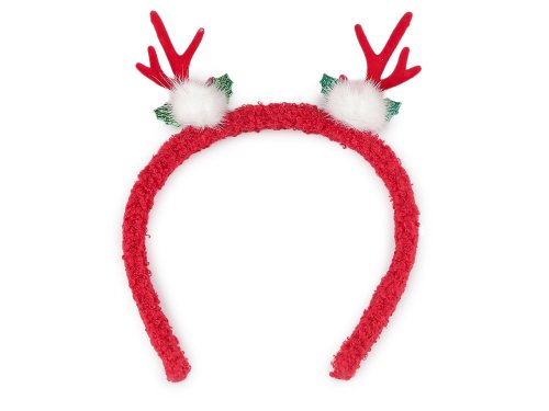 Párty čelenku zdobí malé sametové parůžky s dalšími vánočními přízdobami.