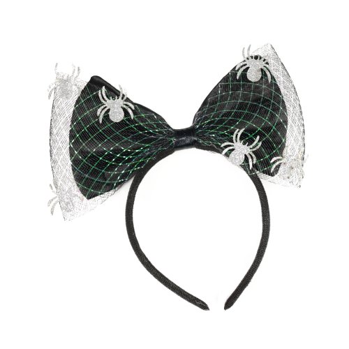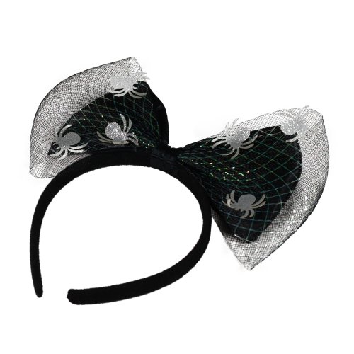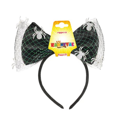 Úžasná čelenka s velkou mašlí a pavoučky je senzačním doplňkem na párty či karneval. Ideální do vlasů při oslavě čarodějnic nebo halloweenu.