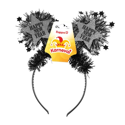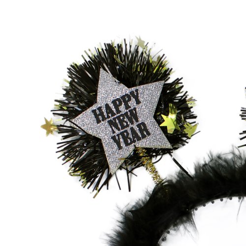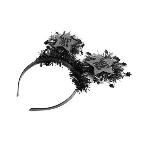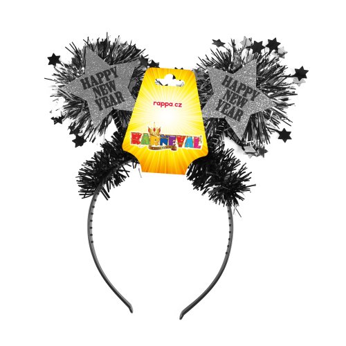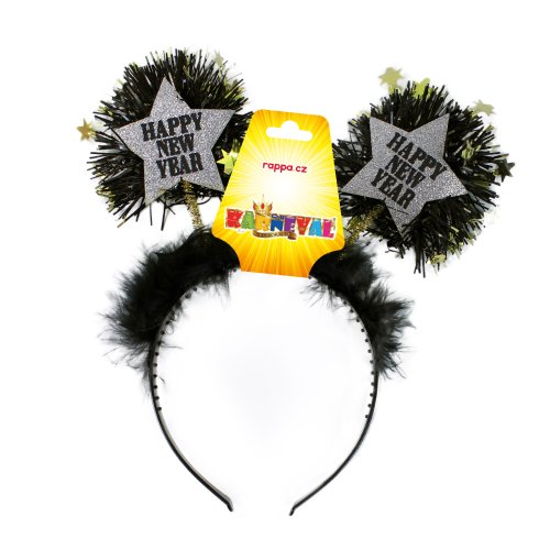 Černá čelenka s třásňovími koulemi, doplněná zlatými hvězdičkami je senzačním doplňkem na oslavu nebo večírek při vítání Nového roku!