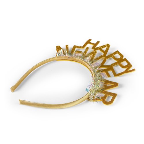 Oslnivá zlatá čelenka s třpytivým nápisem HAPPY NEW YEAR je senzačním doplňkem na oslavu nebo večírek při vítání Nového roku!