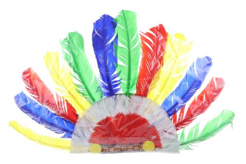 Indiánská čelenka o velikosti cca 57 x 36 cm. Baleno v sáčku. Věk 3+