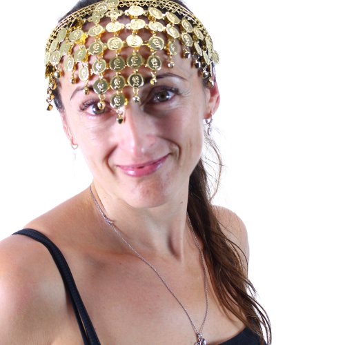 Stylová čelenka se zlatými penízky, vkusně doplní váš karnevalový kostým břišní tanečnice nebo orientální dívky.
