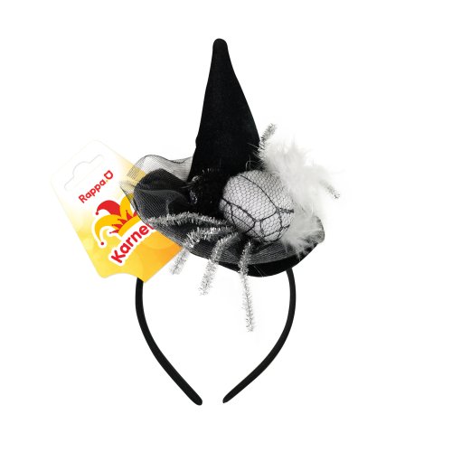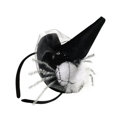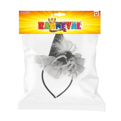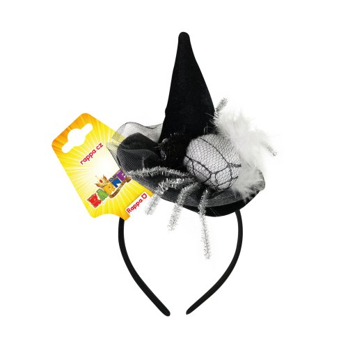 Nepřehlédnutelná čelenka s mini kloboučkem a pavoukem je senzačním doplňkem na párty či karneval. Ideální do vlasů při oslavě čarodějnic nebo halloweenu.
