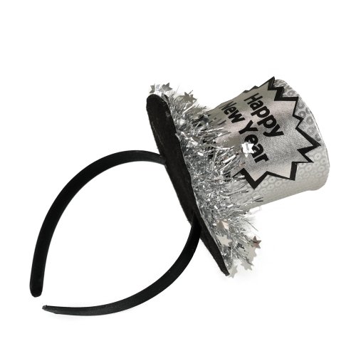 Oslavte příchod nového roku stylově s naším stříbrným mini kloboukem „Happy New Year“, který je připevněn na pohodlné čelence! Tento elegantní doplněk dodá vašemu outfitu slavnostní šmrnc a zaručeně upoutá pozornost na každém silvestrovském večírku.
