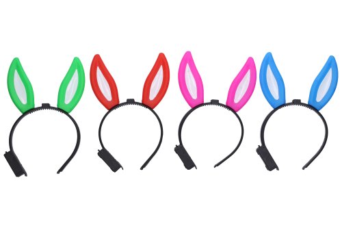 Čelenka s ozdobou uši králičí blikající velikost: 22x14,5 cm. 4 barvy. Součástí baterie 3x LR44(AG13).