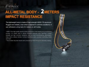 Celokovová konstrukce zajišťuje vysokou odolnost, optimální chlazení a zároveň je plně vodotěsná dle standardu IP68 až do hloubky 2 metry pod vodou. Praktičnost čelovky zvyšuje možnost vyjmout světlo z hlavového držáku a používat ji i jako malou kapesní svítilnu. Navíc je čelovka opatřena ocelovou snímatelnou sponou, takže ji snadno uchytíte na kapsu či popruh. Čelovka Fenix HM51R V2.0 je ideálním společníkem pro různorodé sportovní aktivity, výlety do přírody i do domácnosti a na práci.