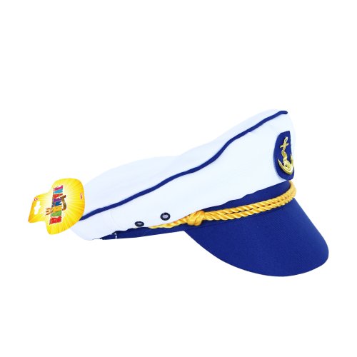 Parádní bílá čepice s modrým kšiltem a lemováním ve stylu námořníka pro dospělé! Tento senzační kousek je zdoben zlatým odznakem na přední straně čepice. Staňte se hvězdou karnevalového večírku díky této nepřehlédnutelné čepici a ohromte tak všechny své přátele!