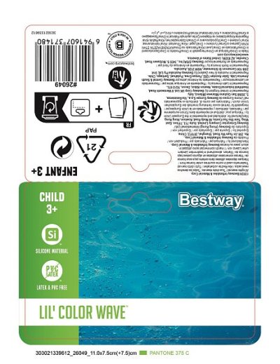 Dětská plavecká čepice Bestway® Lil'Color Wave. Tato silikonová plavecká čepice je speciálně navržena pro malé plavce. Je vyrobena z pružného materiálu. Čepice je šetrná k vlasům. Barevný a hravý vzhled jej činí atraktivním pro děti, navíc jsou ve vodě snadno vidět. 3 barevné varianty v kolekci. Assort je náhodný mix modelů. Výběr nelze ovlivnit. Rozměry produktu: 20 x 18 x 0,2 cm. Rozměry balení: 27 x 11 x 0,5 cm. Věk: 3+