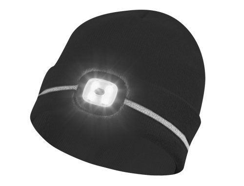 Zimní čepice s integrovaným LED světlem a reflexními pruhy určená pro dospělé. Praktické provedení spojuje tepelný komfort s bezpečností při pohybu za zhoršené viditelnosti. Vestavěné LED světlo nabízí čtyři úrovně jasu, je odnímatelné a dobíjecí přes USB port. Doba provozu při plném nabití je přibližně 60 minut. Reflexní pruh kolem obvodu zvyšuje viditelnost a přispívá k bezpečnosti při práci i volnočasových aktivitách. Velikost: univerzální. Materiál: 100 % polyakryl. Barva: černá.