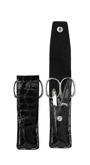 Luxusní manikúrová sada z černé syntetické kůže a lesklého niklu se díky své velikosti vejde do každého zavazadla, a může vás tak doprovázet na všech cestách! Zárukou výjimečné kvality je místo výroby manikúrových nástrojů, které pochází z německého města Solingen. To proslulo výrobou špičkových ocelových výrobků pro manikúru a pedikúru a jeho ochrannou známkou se mohou označovat pouze ti nejlepší výrobci.