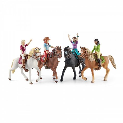Černovláska Sarah & Mystery od Schleich® z Horse Club jsou nerozlučné. Když Sarah a její arabská klisna cválají po polích, brodí se potoky nebo se toulají lesem, splyne jejich srdce v jedno. Figurka Sarah nosí jezdeckou helmu, je plně pohyblivá a dokáže svému koni nasadit uzdu, otěže i sedlo. Figurka Sarah umí stát i sedět v sedle. Žlutý náramek na její paži ukazuje, že je členkou Horse Clubu. Sada obsahuje: 1x figurka Sarah (s pohyblivými klouby), 1x kůň, 1x jezdecká přilba, 1x sedlo, 1x uzda s otěží, 1x náramek na ruku. Figurky Schleich jsou mimořádně detailní, láskyplně malované a umožňují dětem hrát si a zároveň se učit. Nevhodné pro děti do 3 let. Rozměr balení: 15 x 18 x 8,2 cm. Doporučený věk: 5-12.