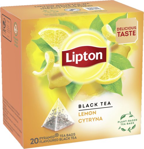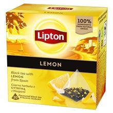 • Porcovaný černý čaj Lipton v pyramidových nálevových sáčcích, ochucený citronem