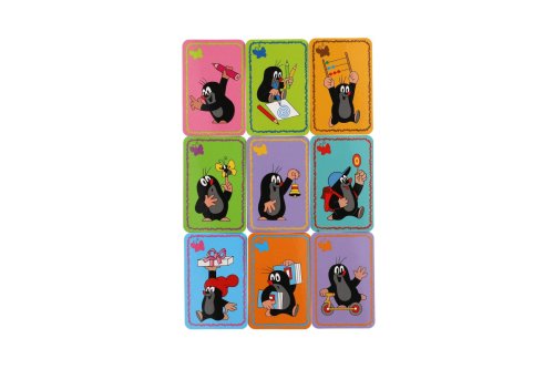 Dětské karty pro hru zvanou Černý Petr s obrázky Krtečka - od ilustrátora Zdeňka Milera.Krabička obsahuje i podrobný návod a karty mají na rubové straně mírně zdrsnělý povrch pro lepší manipulaci s nimi.