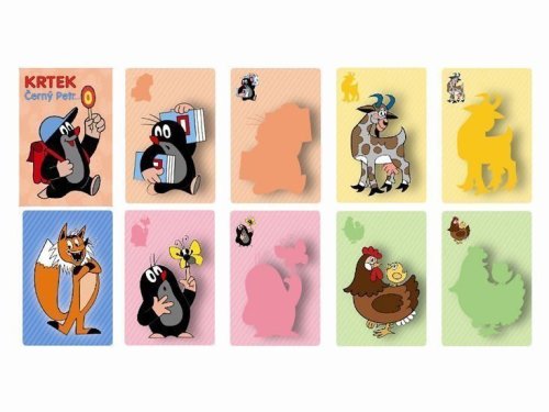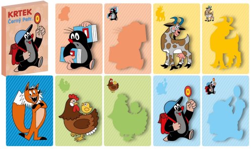 24 karet + karta s černým Petrem + karta s návodem ke hře , materiál krabičky i karet pevný karton s lesklou povrchovou úpravou-voděodpudivá, krabička papírová z důvodu tradice i bezpečnosti dětí, na výrobek byla udělena ocenění "česká kvalita" a "bezpečná a kvalitní hračka"