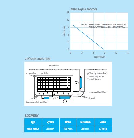 kapacita 12 l/h, 21 dB v 1 m, max. výtlak 10 m