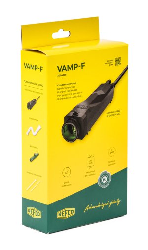 Pořiďte si výkonné čerpadlo na kondenzát Refco VAMP-F. Má kapacitu až 22 l/hod a maximální výtlak až 15 m. Díky kompaktním rozměrům je ideální i do omezených prostorů. Čerpadlo využívá optický senzor pro přesné měření hladiny kondenzátu. Velkou výhodou je také jeho mimořádně tichý provoz (< 20 dB). Těšit se můžete na jednoduchou montáž bez potřeby použití nářadí.