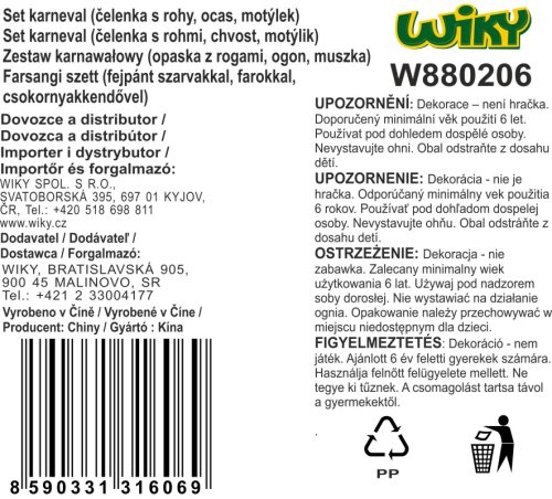 Set obsahuje: čelenku s růžky, motýlka a ocas