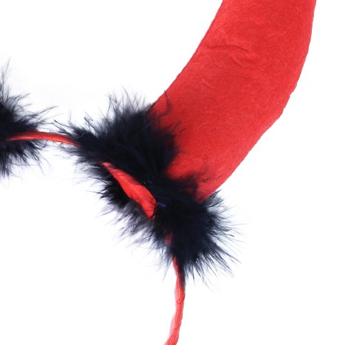Nepřehlédnutelné maxi rohy na saténové čelence jsou vyrobeny z filcu a zdobeny hebkým peřím. Tyto stylovky jsou perfektním doplňkem ke kostýmu čerta nebo čertice!