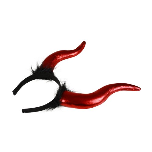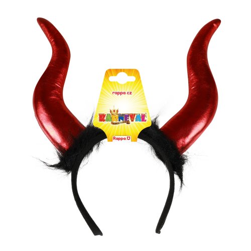 Pekelné čertí maxi rohy na čelence, které jsou zdobeny jemným peřím, určitě perfektně doladí tvůj čertovský kostým!