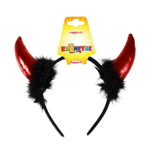 Čertí rohy na čelence zdobeny jemným peřím doladí tvůj pekelný kostým!