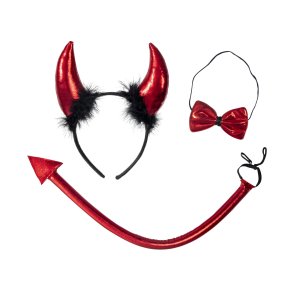 Roztomilá čertí sada, ve které najdete čelenku s rohy, ocas a stylového motýlka.