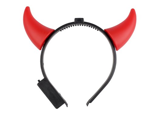 Čertovské blikající rohy jsou nezbytným doplňkem čertovského kostýmu na Mikuláše, ale také na halloweenskou párty a pro každou tematickou oslavu či karneval. Rohy jsou umístěné na čelence, která má zoubky, a ve vlasech dobře drží. Baterie (3x LR44) jsou součástí výrobku. Délka rohů je cca 6 cm.