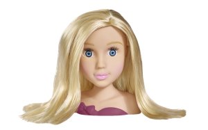Česací hlava pro zkoušení trendy účesů. Nezbytné doplňky součástí, např. sponky, klipsy do vlasů, hřeben, hřebínek. Celkem obsahuje 10 ks příslušenství. Výška 19 cm.