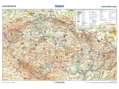 Chyběla Vám mapa Česka, ve které naleznete všechna významná města, řeky, jezera, hory a pohoří, to vše doplněné významnými památkami – prostě taková přehledná vlastivědná mapa? Navíc za pouhých 50,- Kč?!My vám ji nyní nabízíme aktuální a v novém hávu, s mnoha ilustracemi nejen hradů a zámků, ale také přírodních nebo technických památek, všech nejzajímavějších míst naší země.Ve 3. vydání najdete nově na rubové straně satelitní snímek Česka.Určitě se bude hodit především školákům, ale věříme, že ji ocení každý, kdo se zajímá o zeměpis a krásy naší vlasti.oboustranná laminovaná mapavlastivědná mapa Česka s ilustracemi významných kulturních i přírodních památeknárodní parky, CHKOpamátky UNESCO a městské památkové rezervacehrady, zámky, lázně, jeskyně, technické památky...hranice krajů, aktuální silniční síťsatelitní snímek Česka