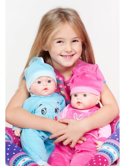 Dětská panenka PlayTo. Hlava, ruce a nohy jsou vyrobeny z gumy, tělíčko pak z měkkého materiálu. Panenka má milou tvářičku, která vypadá jak opravdové miminko. Délka panenky je 46 cm a je zabalená v barevné krabici. Panenka má česky mluvící modul, který se nachází v kapsičce na bříšku. Modul po stisknutí přehrává 5 písní a mluví 14 českých vět. <BR>Panenka zpívá tyto české písničky:<BR>- Travička zelená<BR>- Skákal pes <BR>- Prší, prší<BR>- Holka modrooká<BR>- Šla Nanynka<BR>Panenka mluví tyto české věty:<BR>- Hraj si se mnou<BR>- Dej mně spinkat maminko<BR>- Maminko hraj si se mnou<BR>- Zpívej se mnou<BR>- Obejmi mě<BR>- Tatínku mám Tě moc ráda<BR>- Tatínku hraj si se mnou<BR>a další.<BR>Modul je napájen 3 kulatými bateriemi 1,5V ( AG13,LR44-kulaté), testovací baterie jsou součástí balení. Rozměry krabice: vxšvh: 47x28x12 cm. Vhodné pro děti od 3 let.