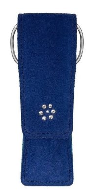 Cestovní sada s pouzdrem z pravého semiše s kytičkou z čirých krystalů se vejde do každé kabelky či příručního zavazadla. Zárukou výjimečné kvality je místo výroby manikúrových nástrojů, které pochází z německého města Solingen.