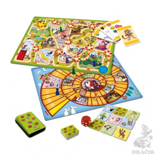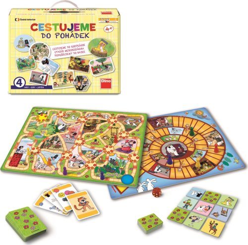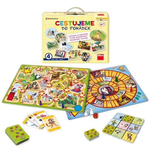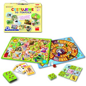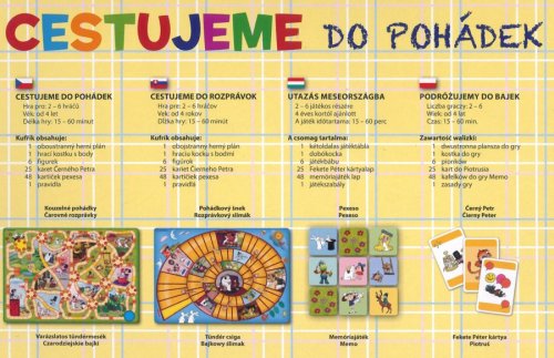 Cestujeme do pohádek je skvělý soubor her pro všechny malé milovníky večerníčků. Hra obsahuje 4 zábavné hry. Díky známým pohádkovým postavičkám si zpříjemníte volné chvíle na cestách.Obsah:1 oboustranný herní plán1 hrací kostku s body6 figurek25 karet Černého Petra48 kartiček pexesapravidla
