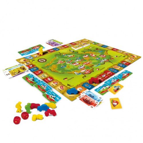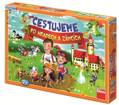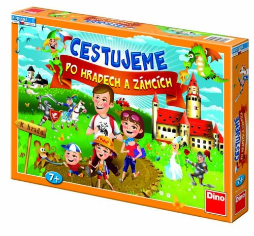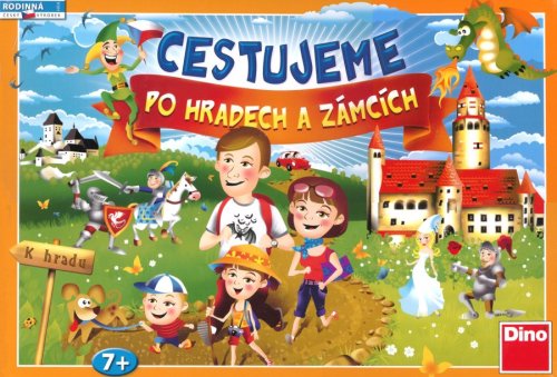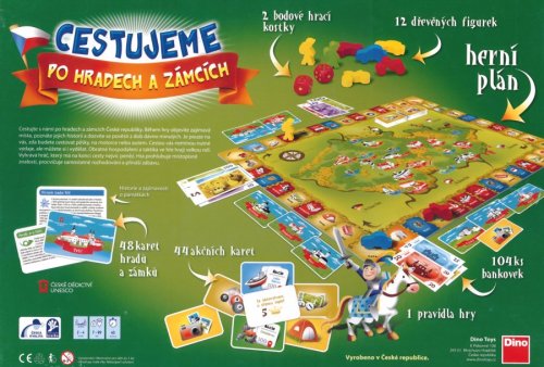 Hra Cestujeme po hradech a zámcích. Balení obsahuje 1 herní plán, 12 dřevěných figurek, 48 karet hradů a zámků, 44 akčních karet, 2 bodové hrací kostky, 104 bankovek a 1 pravidla. Hraje určena pro 2 - 4 hráče. Vhodné od 7 let.