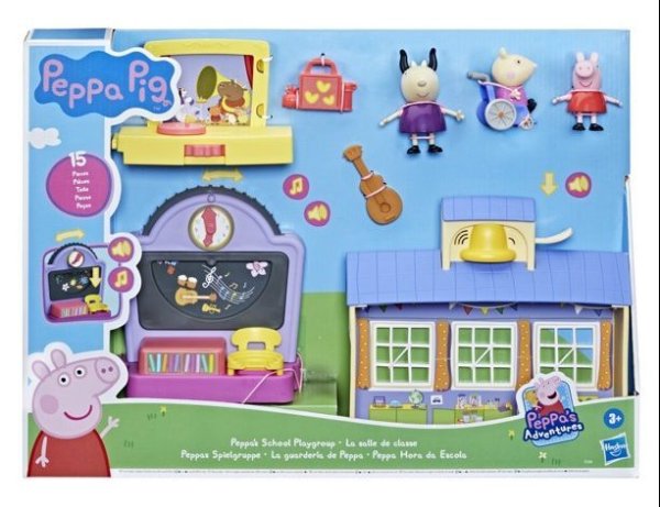 Užij si den s Peppou a školní kapelou! Škola je inspirována Peppinou školní budovou, kterou můžete vidět v animovaném seriálu. jak stráví Peppa svůj den ve škole? Bude se učit novou písničku s madam Gazelou? Nebo bude tancovat na jevišti? Všechno je jen na tobě a tvojí fantazii! Balení obsahuje: