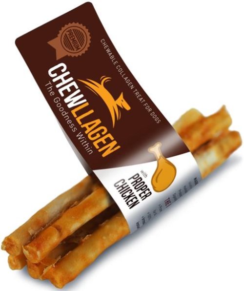 Pochoutky Chewllagen jsou ideální jako odměna, jíž psovi dodáte sílu a podpoříte jeho zotavení např. po delší procházce. Vyrábějí se z čistého kolagenu získávaného z kůže volně pasených jihoamerických krav. V procesu ohřevu jsou kolagenové bílkoviny hydrolyzovány a štěpí se na menší, snadněji stravitelné molekuly. Poté je kolagen vytvarován, upečen a nakonec dochucen skutečným hovězím nebo kuřecím. Pamlsky obsahují především kolagen typu 1 a 3, který stimuluje tvorbu různých tkání včetně chrupavčitých a podporuje tak zdraví kloubů, kůže, srsti i střev. Hlavní přednosti: